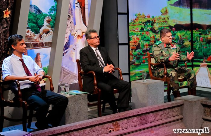 ‘Kata Wahamuda-Rata Wahamuda’ (Shall we shut the Mouth or the Country?) theme of the ITN TV channel’s intellectual forum of ideals, ‘Doramadalawa’ feature on Monday (2) evening deliberated on a wide variety of concerns, related to the second outbreak of COVID-19 virus, in which Secretary to Ministry of Health, Major General (Dr) Sanjeewa Munasinghe, Head, National Operations Centre for Prevention of COVID-19 Outbreak (NOCPCO), Chief of Defence Staff and Commander of the Army, Lieutenant General Shavendra Silva and Dr Samitha Ginige, Specialist Epidemiologist of Ministry of Defence took part and presented true facts and circumstances under which the fight against COVID-19 is being spearheaded. Lieutenant General Shavendra Silva kicked start the discussion. Here follows the video clip of the TV feature: |
