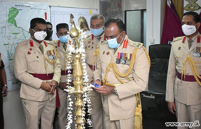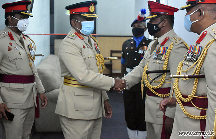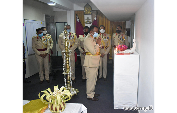 The newly-appointed General Officer Commanding of the 14 Division was warmly welcomed by Staff Officers on arrival. Later on, he placed his signature in the first official document to mark his assumption of duties, amidst chanting of 'Seth Pirith' in the presence of senior officers.