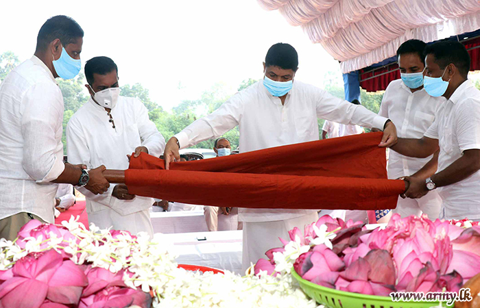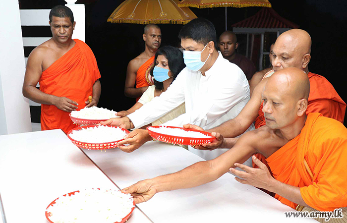 The traditional Katina Pooja (rainy retreat) in the historic Tissa Raja Maha Vihara in Kankesanthurai, preceded by a series of religious observances. The climax of the whole religious festival took place on Tuesday (3) with the participation of Maha Sangha and a gathering of military personnel with Commander, Security Forces-Jaffna Major General Senarath Bandara. Lieutenant Colonel R Panditharathne, Commanding Officer, 5 Sri Lanka Army Service Corps.