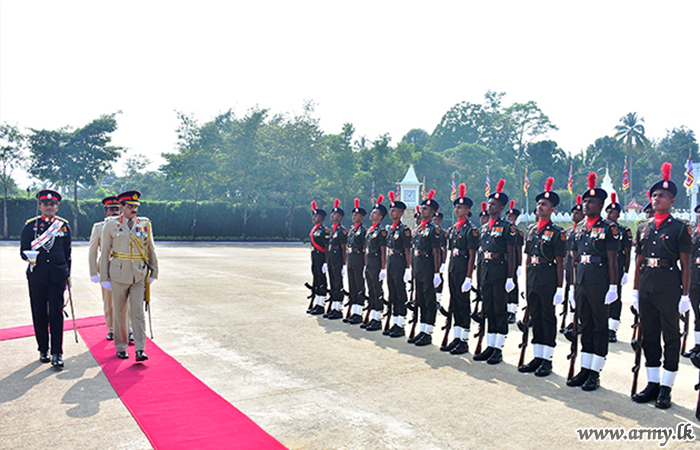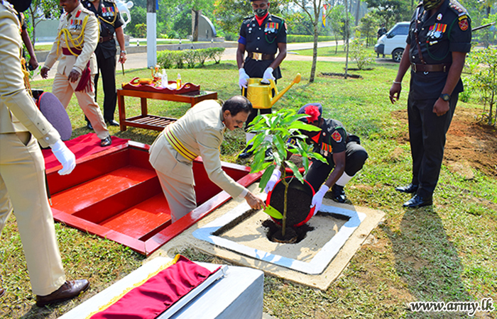 Centre Commandant, Brigadier Roshan Jayamanna welcomed the Chief Gust and invited him to review the Guard turnout at the entrance and accompanied him to receive the salute in the Guard of Honour in the parade square. Afterwards, he recalled the gallantry of fallen War Heroes at the monument by placing a floral wreath and also joined a sapling planting programme.