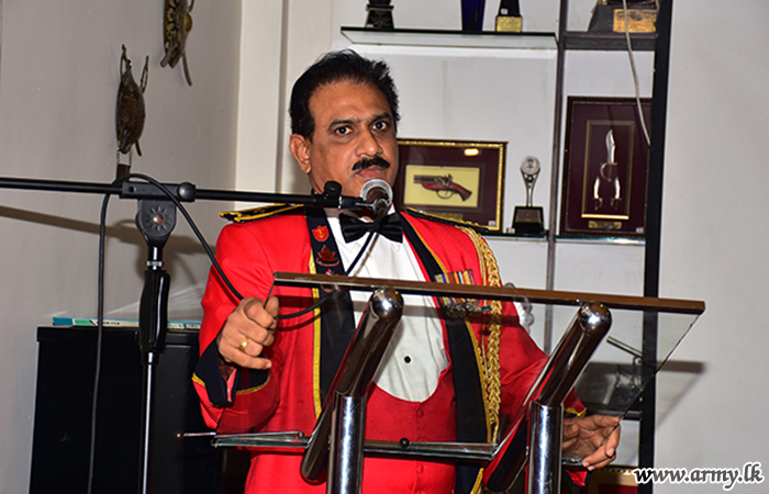 Then the Chief Gust was accompanied to the customary dinner at the Officer’s Mess as dusk fell. Major General Chula Abeynayake, Commander of Security Forces - West and Colonel of the Regiment of the Gemunu Watch, delivered the usual farewell speech on behalf of all Officers of the Gemunu Watch to extend their deep sense of gratitude and appreciation to Major General Shantha Rajakaruna.