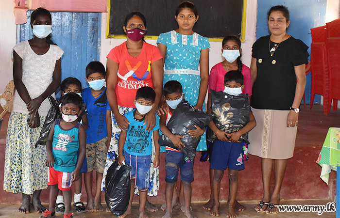 Thanks to the generosity extended by a private donor, personally known to Major General Priyanka Fernando, General Officer commanding, 58 Division, troops recently distributed a large stock of garments and clothes among needy families and religious places in Puttalam area.