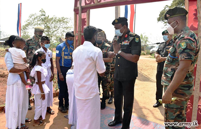 Accordingly, the corner-stone for construction of the house was auspiciously laid by the Commander 212 Brigade gracing the occasion as the Chief Guest. Construction of the house was under taken by troops of 5 Sri Lanka National Guard under the guidance of the 212 Brigade and the 21 Division. Major General Vikum Liyanage, General Officer Commanding, 21 Division of the SFHQ-Wanni gave his blessings for the project.