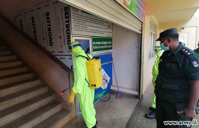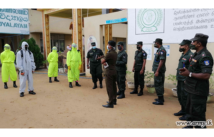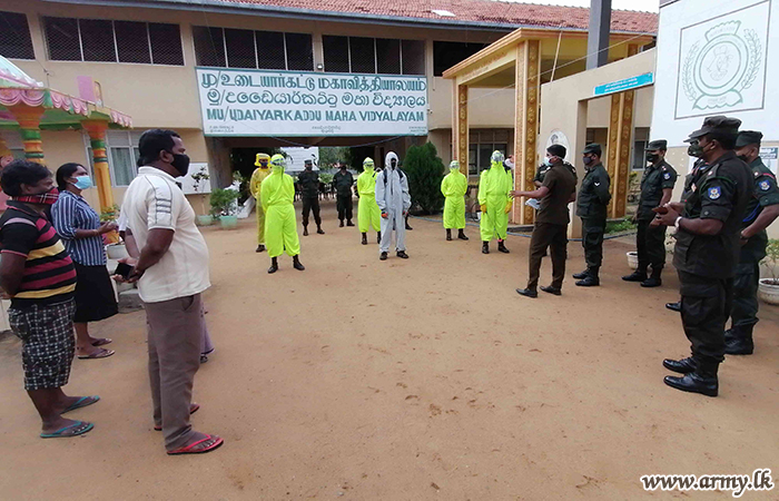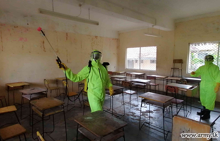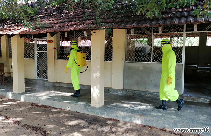 9 Sri Lanka National Guard (SLNG) troops of the 681 Brigade in the 68 Division of the Security Force HQ-MLT disinfected the Udayarkattu Maha Vidyalaya and its premises on Saturday (7) where the G.C. E (A/L) examination was held.