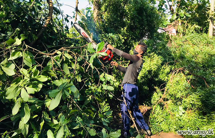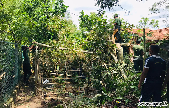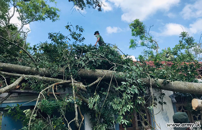 Gushing winds and storms that swept across the area caused damages to a large number of roof sheets of houses, walls, etc rendering those inhabitants helpless. On being informed of the chaos, Brigadier Sajith Liyanage, Commander, 143 Brigade on the instructions of the Major General Ranjan Lamahewa, General Officer Commanding, 14 Division and the Major General Chula Abeynayake, Commander, Security Forces-West dispatched a platoon of soldiers and officers to attend to the emergency and help the affected in whatever the way possible.