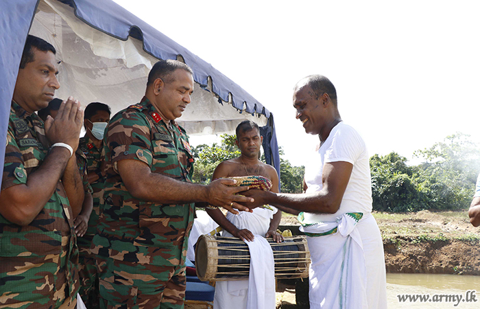 The project launched under the guidance of Major General Chula Abeynayake, Commander, Security Forces-West saw the process of sowing seed paddy took place at the auspicious minute in keeping with traditional agricultural practices giving pride of place to religious observances by the side of the ‘Kamatha’ (threshing floor).