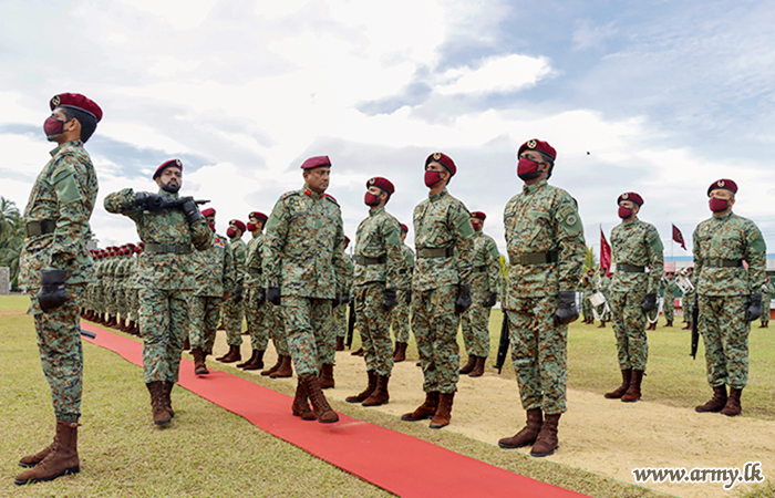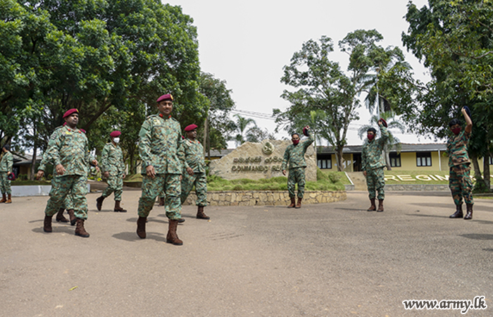 The outgoing Major General Priyantha Senaratne was accorded a ceremonial Guard Turnout and a Guard of Honour salute when he recently arrived at the Commando Regiment (CR) HQ at Ganemulla on the eve of his retirement.