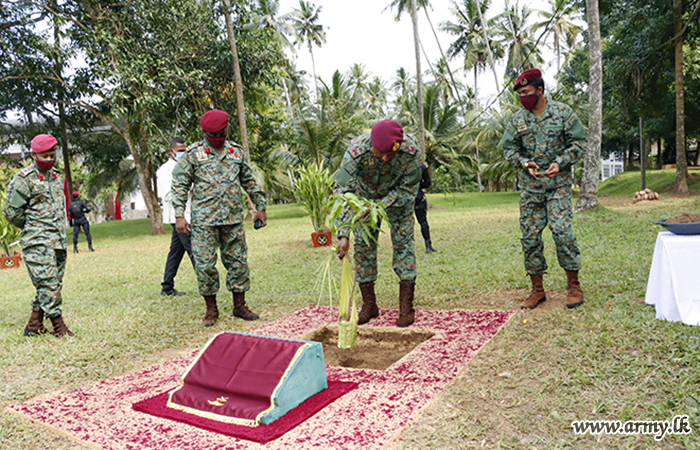 Thereafter, he planted a mango sapling in memory of his retirement, prior to addressing Officers in the Regiment. In his address to the Officers, he recapitulated his life-time experiences in the Army and advised all officers to maintain physical standards to accepted level and maintain good discipline to lead the Regiment to success.