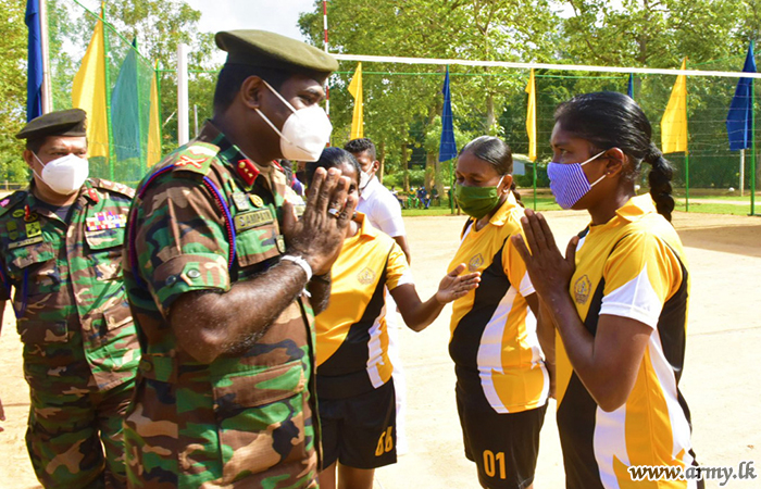 With the objective of providing more facilities and improving sporting abilities of all ranks serving at the Security Force Headquarters Kilinochchi, the new Outdoor Volleyball Court was constructed in accordance with high standards with the assistance of 9 Sri Lanka Engineers and support of all the troops in the SFHQ KLN. Exhibition Volleyball games by both sportsmen and women were played among four teams to mark the opening of the new Volleyball court.