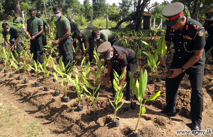 Major Rajanayake, Commanding Officer of 5 SLAGSC, Officer Commanding of the farm, Agricultural Officers and few Other Ranks joined the occasion by adhering strictly to health guidelines. |