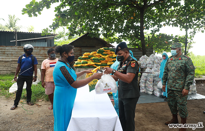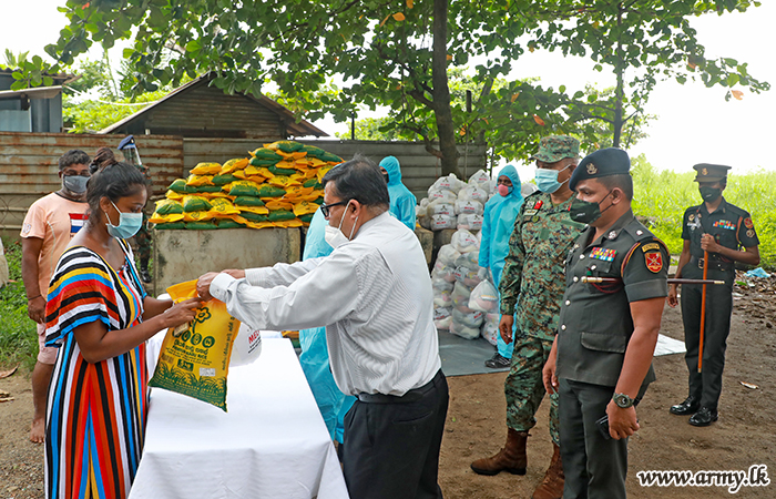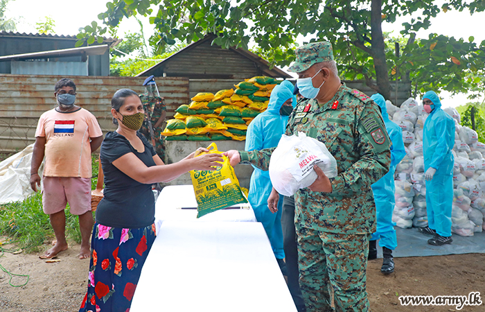 Appreciative of the Army Chief, Lieutenant General Shavendra Silva's efforts in containing the transmission as Head of the National Operations Centre for Prevention of COVID-19 Outbreak (NOCPCO), the donor, Colonel (Retd) Mahinda Rathne Tennakoon, Director Melwa Group of Companies handed over the stock to Brigadier Nilantha Fernando, Commander 142 Brigade for distribution. Today's distribution took place under the close supervision of Major General Ranjan Lamahewa, General Officer Commanding 14 Division.