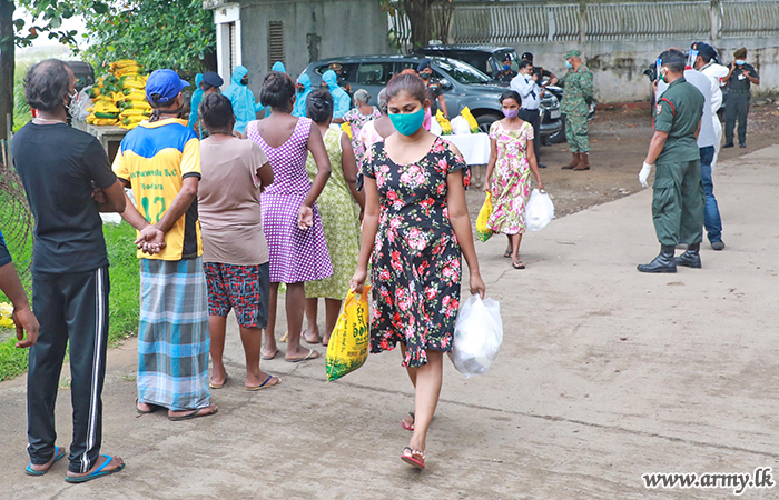 Major E.M.M.S.K Ekanayake, Commanding Officer 14 Vijayabahu Infantry Regiment and troops of the 14 VIR together with members of Modera Police station and Grama Niladari in the area distributed those ration packs among the inmates. |