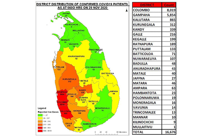 Up to yesterday (28), a total of 22,988 persons have been confirmed COVID-19 positive from all over the country, including the dead. 16,655 fully-recovered COVID-19 patients have been so far discharged from hospitals and the rest 6,224 are still under treatment in hospitals and care centres.