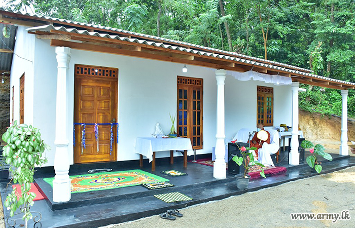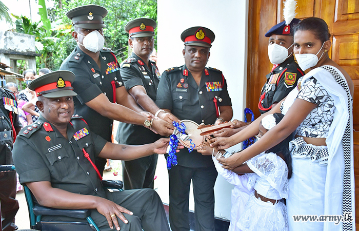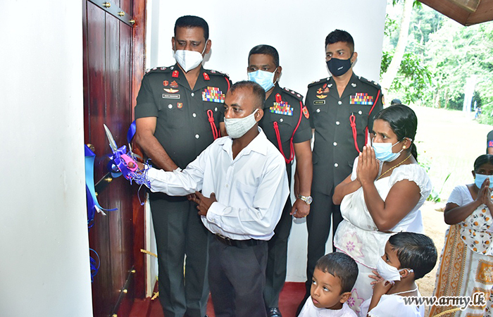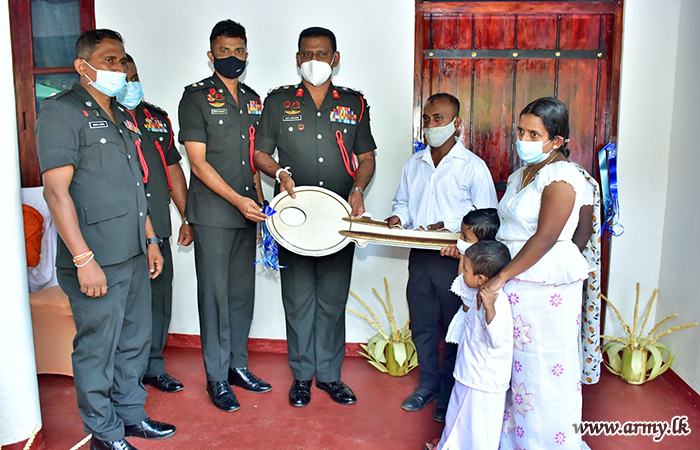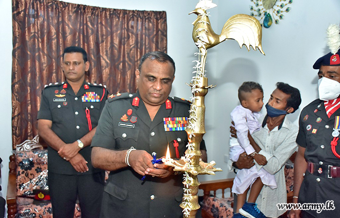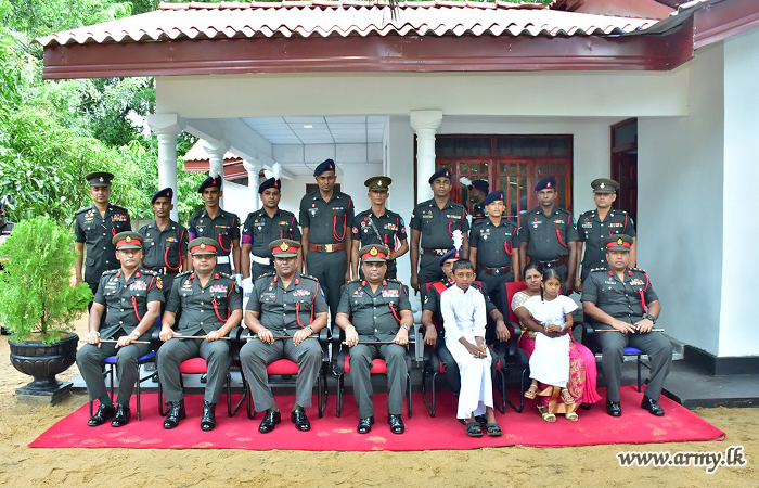Meanwhile, 24 SLLI troops, appreciative of the services of a civil employee who worked for the SLLI for years built one more new home at Harispattuwa and invited Major General Jayaweera to warm it and formally vest it in the family. The entire expenditure of the house was restricted to Rs 1.3 million, footed by 24 SLLI troops and the RHQ SLLI. The house warming ceremony adhering to health guidelines took place on Wednesday (25).