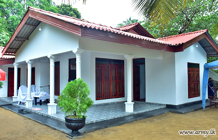 On the eve of his retirement, Major General Jayanath Jayaweera, Colonel of the Regiment, SLLI and the Commandant, OCDC at Buttala brought his own house construction project to completion after constructing three more new houses to deserving soldiers and a civil employee working for the Army.