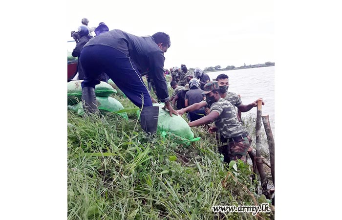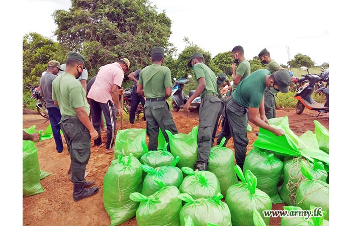 Troops together Divisional Secretariat and Irrigation Department officials and staffers repaired the damaged tank bund on the directions of the Commander, Security Forces-East Major General Chinthaka Gamage.