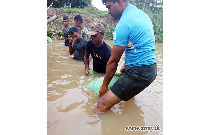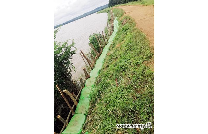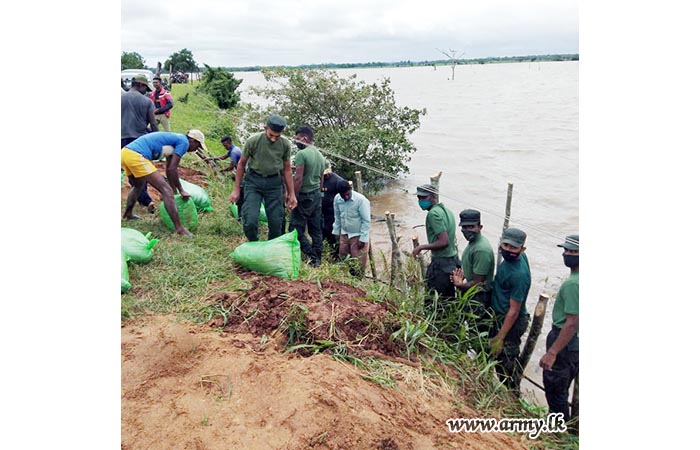 6 Sri Lanka Armoured Corps troops, attached to the Security Force HQ - East immediately attended to the repairs of a split caused to the Kallampattu tank bund in the general area of Morawewa due to torrential rains and cyclonic weather during 2-3 December.
