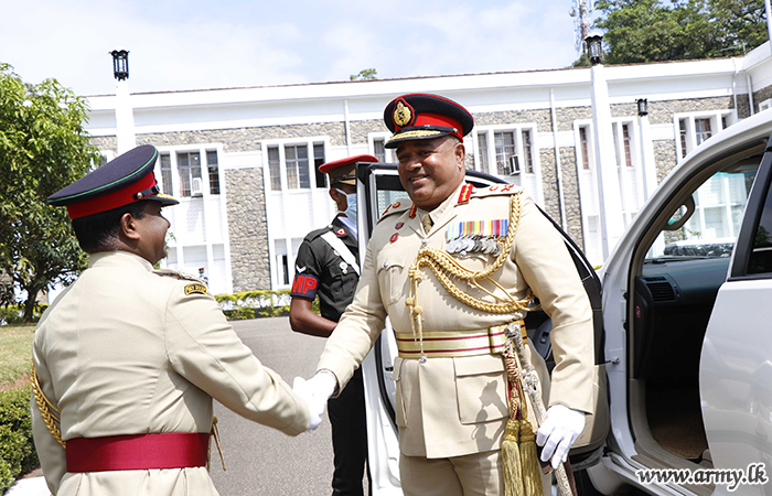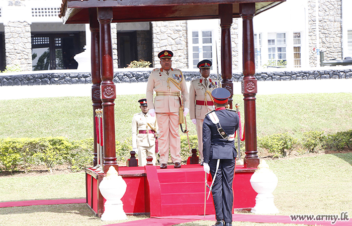 Troops of the Gemunu Watch (GW) presented the Guard Turn out and the Guard of Honour salute in the parade square at the SFHQ-West to bid farewell to the retiring Commander SF-West. Officers of the SFHQ-West, General Officers Commanding of the 14, 61 Divisions and Brigade Commanders, Directors, Center Commandants, Commanding Officers and Other Ranks of the SF HQ-West witnessed the farewell parade and the ceremony.