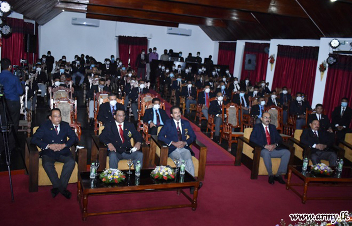 As the stage was set to do honours, the Chief Guest, Major General Jagath Gunawardena, Major General Kuma Peiris, Additional Director, MOD and Tri-forces Headquarters construction project management unit and Major General Nihal Amarasekara, Chief Field Engineer were respectively invited one by one in sequence on stage for presentation of Colours to the recipients who excelled in Army, Defence Services and national level sports events.