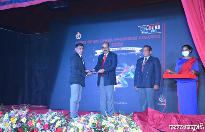 Sportsmen/women of the Corps of Sri Lanka Engineers (SLE) who brought admiration and prestige to the Regiment and the Army alike in the past few years received recognition and praise of Major General Jagath Gunawardena, Colonel Commandant of Corps of Sri Lanka Engineers and Chief of Staff of the Sri Lanka Army, who is also the President of the Sri Lanka Army Sports Board as the Chief Guest on Thursday (4) during the ‘Colours Night 2020’ at the Regimental Headquarters, Panagoda where all of those achievers were awarded special laurels.