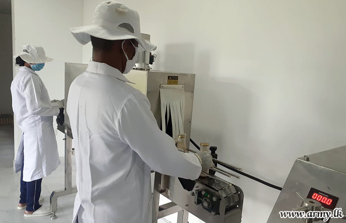 The project, another milestone towards becoming self-sufficient in all essential commodities as instructed by the Commander of the Army through his 'Thuru Mithuru-Nawa Ratak' cultivation and development-oriented initiative received a fillip from Mrs Sujeewa Nelson, President, Army Seva Vanitha Unit who arranged the sale and distribution of such fresh milk bottles at nominal price across all major Army welfare stalls at Kendalanda, Manning Town, Rukmalgama, Panaluwa, Jawatte, Wattala and regimental welfare shops.
