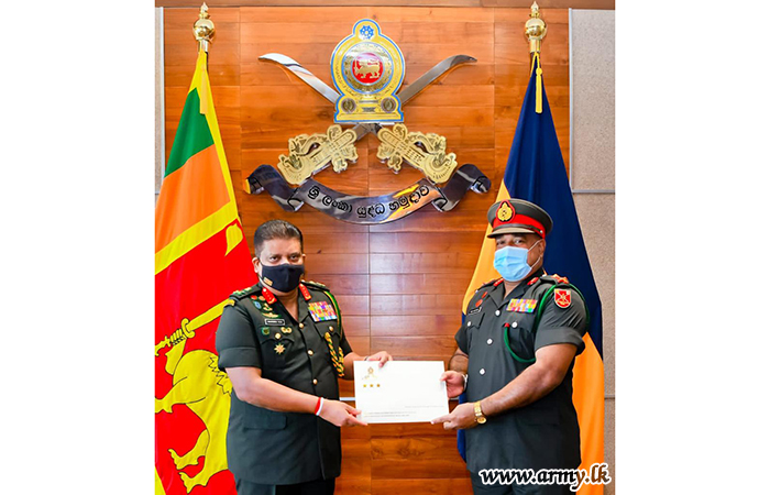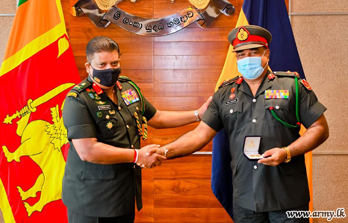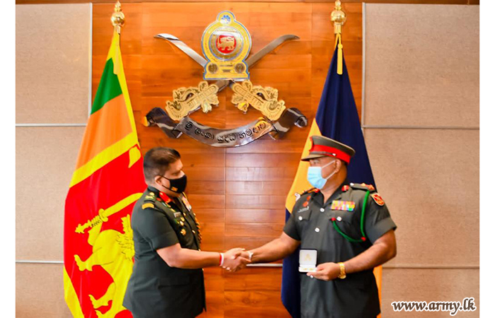 One of the proud soldiers-produced by Gemunu Watch (GW), Major General Chula Abeynayake, Colonel Commandant of Gemunu Watch and Commander, Security Forces West on the eve of his retirement from the Army was invited by the Chief of Defence Staff and Commander of the Army, Lieutenant General Shavendra Silva to his office at the AHQ on Monday (7) where the latter commended his dedicated services to the Army for more than three decades.