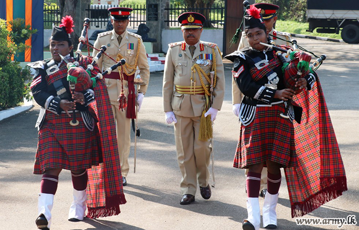 The day's Chief Guest was welcomed by the Colonel Kumara Abeysingha SLAGSC Centre Commandant at the main entrance before he was invited to review the Guard Turnout and receive the subsequent salute in the Guard of Honour in the parade ground.