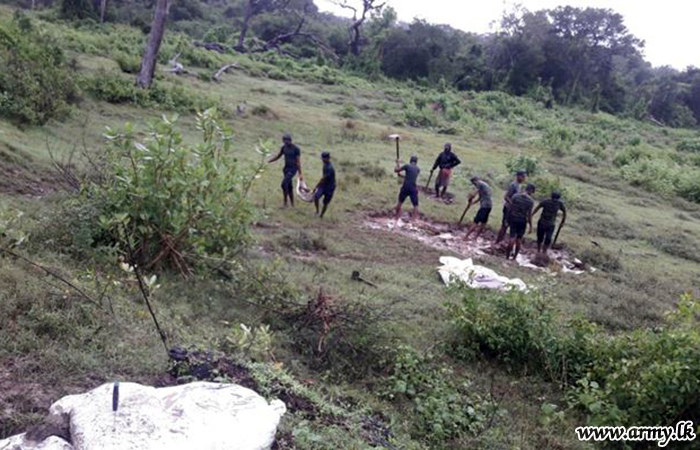 5 Sri Lanka Light Infantry troops of the 213 Brigade of the 21 Division under the Security Forces HQ - Wanni recently prevented an imminent breach in the Andiyapuliyankulam tank bund in Villachchiya area and subsequently cleaned the Nabadagasdigiliya tank with the support of the villagers.