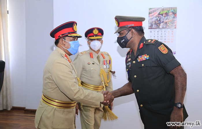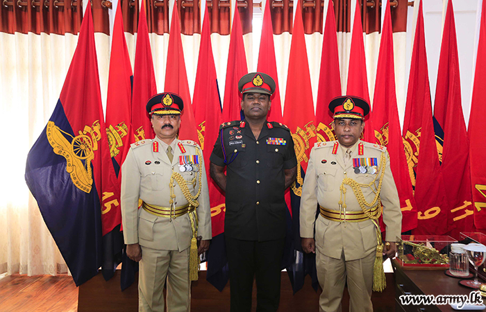 Featuring the traditional event, they at first reviewed the Guard Turnout presented by the Regimental Headquarters and accepted the regimental salute accorded by a subsequent Guard of Honour, presented by the Regiment. After that, newly promoted Major Generals called on Major General Sampath Kotuwegoda, Colonel Commandant of the Regiment of Artillery at his office and received his best wishes on behalf of All Officers and Other Ranks of the Regiment.