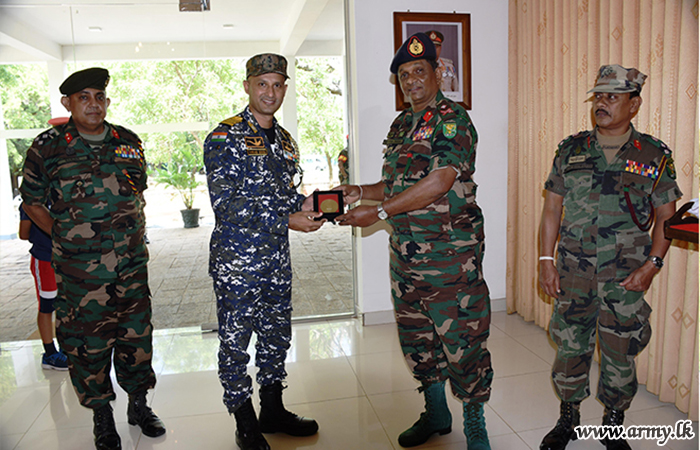 The delegation of Defence Attaches were from the Australia, Bangladesh, India, Maldives, Pakistan, Russia and USA. A power point presentation was conducted to enlighten them on the responsibility and activities of civil-military coordination in the region. Later they were treated to an entertaining session, rich with cultural dances performed by Army dancing teams. A group photograph and tea added variety to the agenda. Souvenirs were also exchanged with representatives to mark their visit before they departed to Trincomalee to continue with their visit.