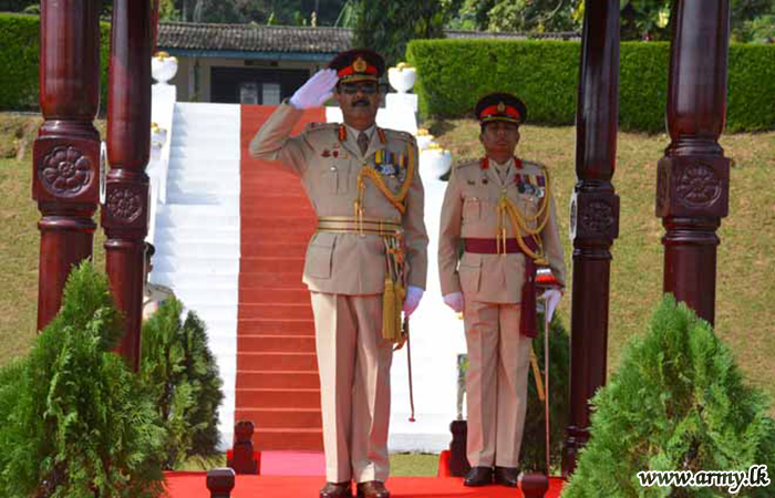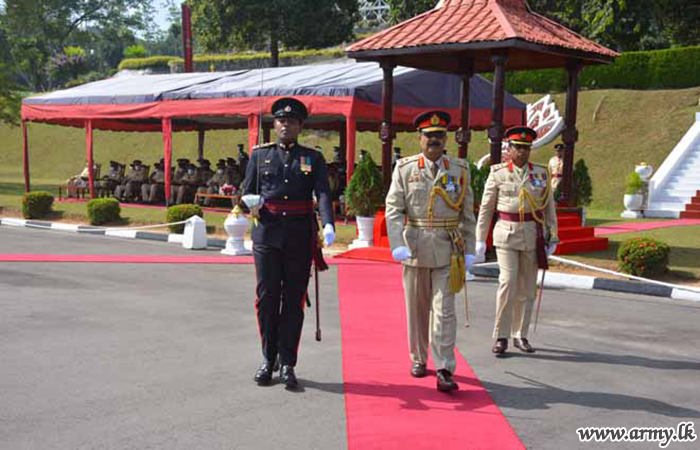As the initial military formality, the new Colonel Commandant was warmly welcomed by Brigadier Mangala Mayadunna, Centre Commandant at the entrance to the Regimental Headquarters and invited him to receive the Guard Turnout salute before he was accompanied to pay tribute to fallen War Heroes at the Regimental Monument.