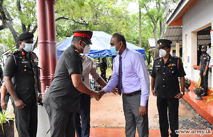Major General Priyantha Perera, Commander Security Forces - Wanni, together with Brigadier Anil Peiris, 212 Brigade Commander, a few Senior Officers of the 21 Infantry Division, Commanding Officer of 5 SLNG Battalion, Hospital staff and civilians were there during the formal vesting of those facilities in the hospital administration.