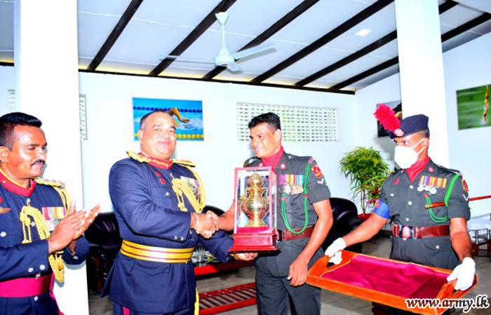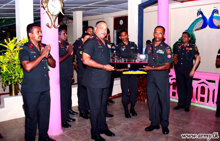 A special appreciative memento was also presented to Major General Chula Abeynayake by the newly-appointed Colonel of the Regiment, Major General Kumara Jayapathirane. |