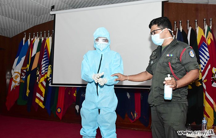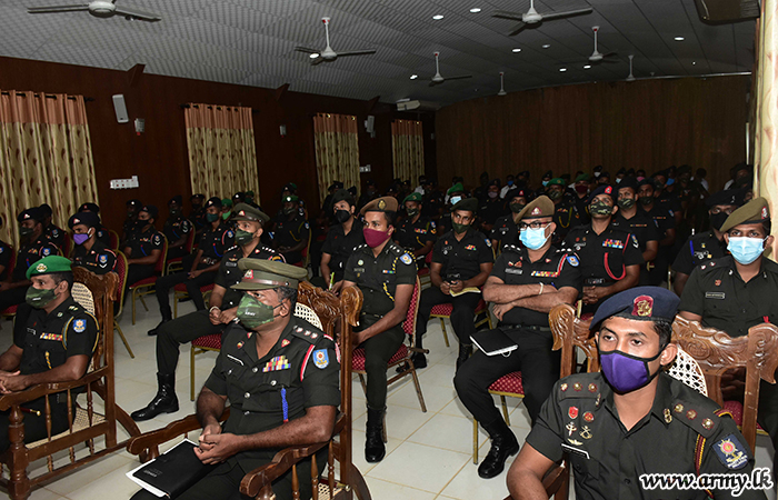 Those awareness lectures were delivered by Lieutenant Colonel D.A.W Deshapriya, Chief Instructor of the 59 Division Battalion Training School and Captain J.T Muthunuwan, Medical Officer at Army Base Hospital Mullaittivu. The session included practical demonstrations on management of quarantining ones and infected ones, etc.