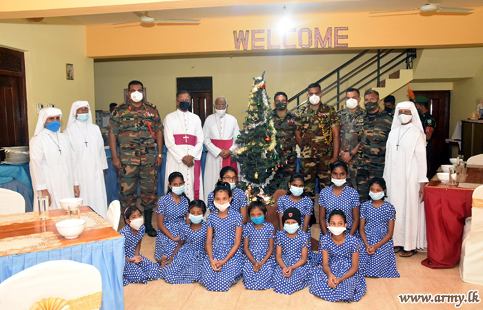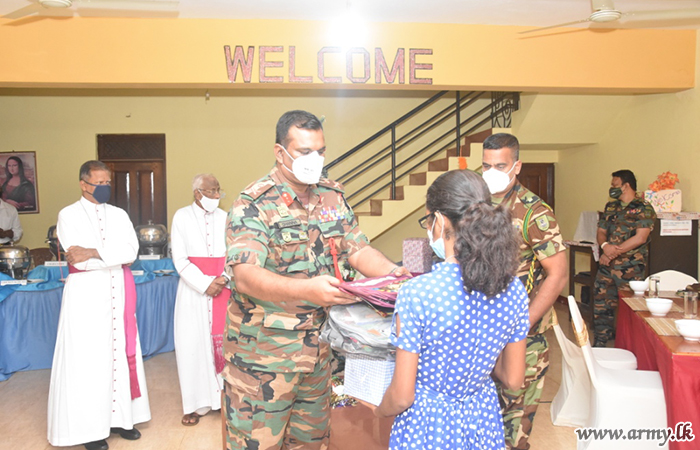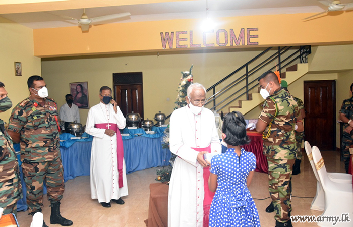 2 (V) Gajaba Regiment and 17 Sri Lanka National Guard troops serving the general areas of Trincomalee organized a Christmas programme and offered lunch to the children at ‘Geni Orphanage’ at Trincomalee on 22 Dec 2020. During the programme, valuable gifts were also distributed among the children. Further, Reverent Fathers and Sisters took part in the event and blessed the event, held on the eve of the Christmas.