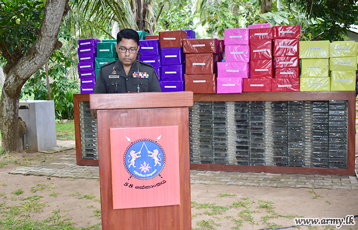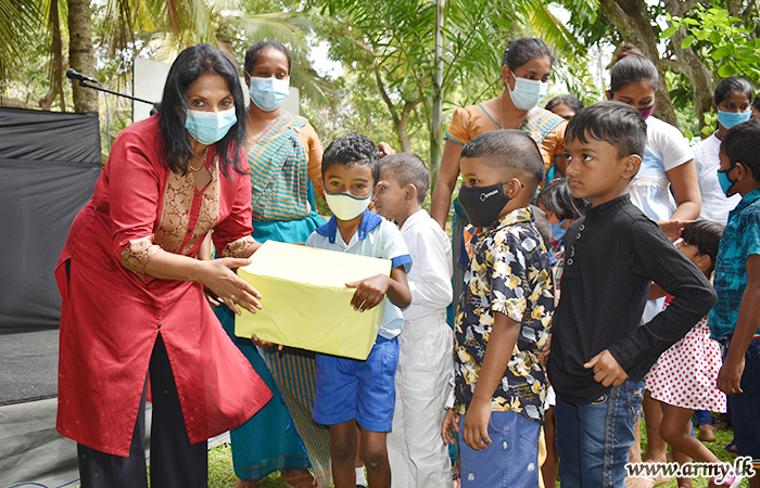 Ven M. Dhammadassi Thero of Mahakonwewa Chiththa Samadhi Monastery also attended the event at the invitation of Major General Priyanka Fernando, General Officer Commanding, 58 Division where a donation of school accessories, sports equipment and garments to kids around the area took place with the sponsorship, generously provided by the Executive Director Hemas Outreach Foundation / General Manager of Communications and Sustainable Development, Mrs Shiromi Masakorala and company members.