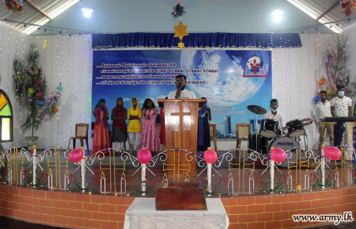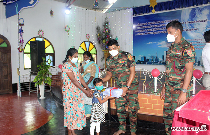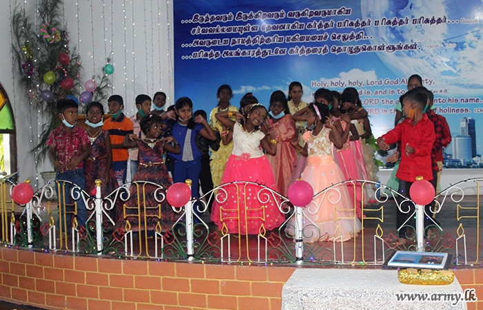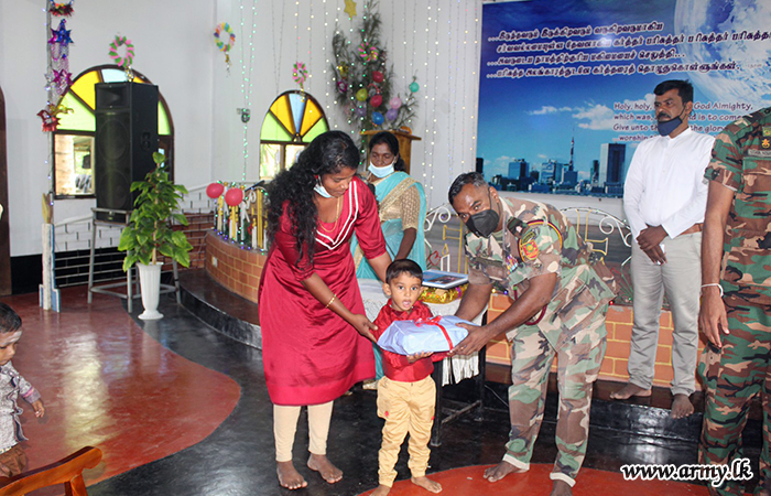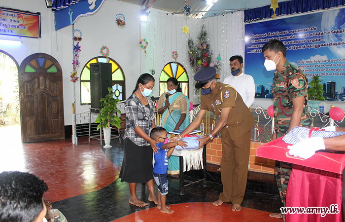 20 (V) Vijayabahu Infantry Regiment (VIR) troops of the 662 Brigade under the 66 Division of the Security Force HQ - Kilinochchi on account of Christmas season gave away a stock of school books and accessories to 40 needy students after assembling all of them at the Church of the Words of Christ, Anavilandankulam, Kilinochchi on Friday (25).