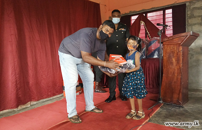 11 Sri Lanka Artillery (SLA) regiment troops of the 543 Brigade of the 54 Division under the Security Force HQ Wanni in Selvary Village, Talaimannar coordinated the distribution of school accessories and equipment required for the academic year 2021 among 28 students in Selvary village on Sunday (27).