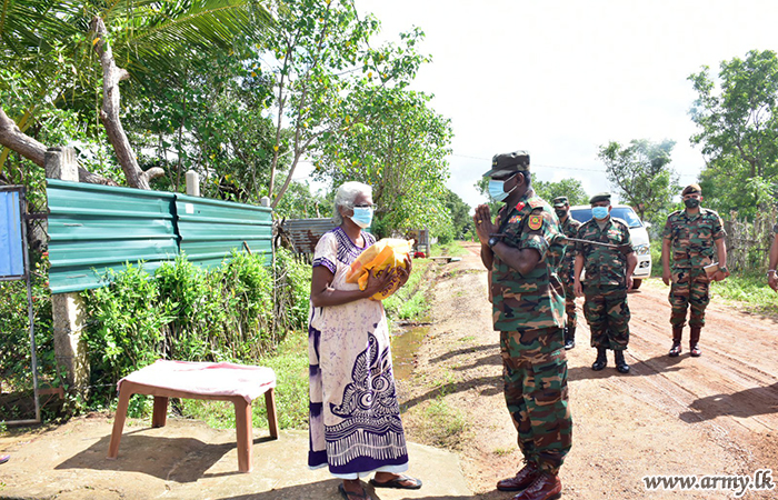 Major General Sampath Kotuwegoda, Commander Security Forces- Kilinochchi, Major General Sujeewa Senarath Yapa, General Officer Commanding of the 57 Division, Commanders of 571 and 662 Brigades, Commanding Officers of 9 Vijayabahu Infantry Regiment and 20 Battalion Sri Lanka Light Infantry joined the distribution programme after visiting doorsteps of those beneficiaries, strictly adhering to all health guidelines and preventive measures.