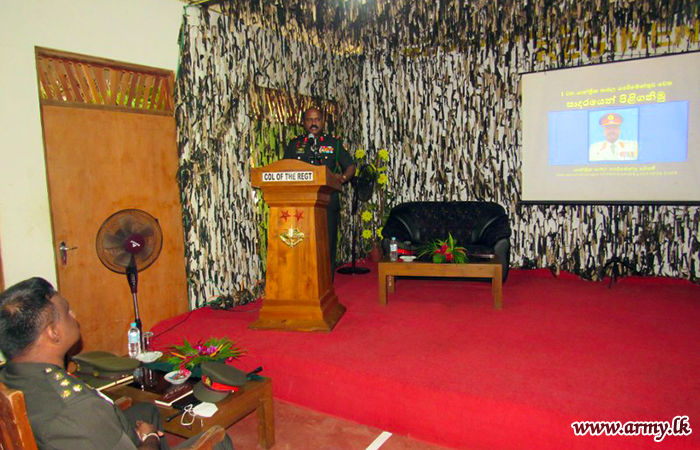 Brigadier Janaka Priyadarshana, Commander Mechanized Infantry Brigade, together with Brigadier Kumara Wanasinghe, Centre Commandant, Mechanized Infantry Regiment and Staff Officers welcomed him when he arrived at the MIR Brigade HQ afterwards.