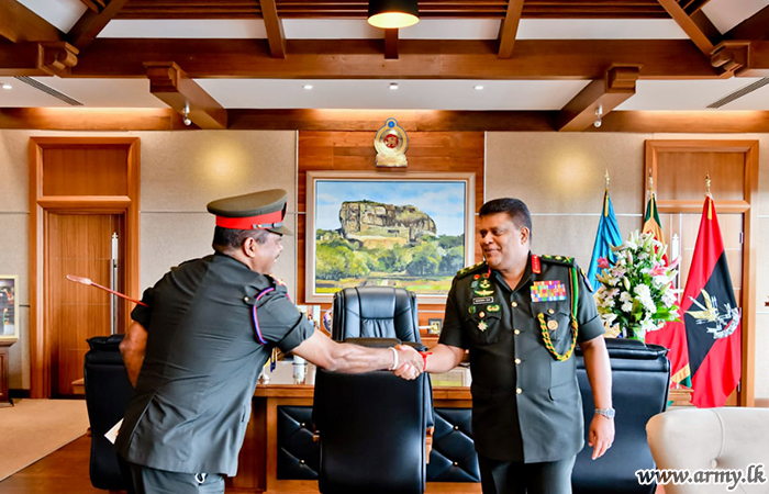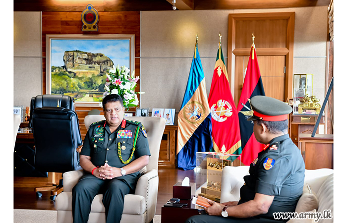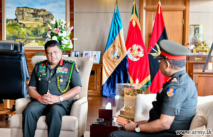 General Shavendra Silva during the brief interaction shared a few thoughts and pleasantries with Major General Shantha Hewawitharana who has served a number of key appointments in the Army and the SLA in particular during his military career of more than 32 years. The Army Chief also appreciated him for his outstanding contribution as the Head of the Military Intelligence.