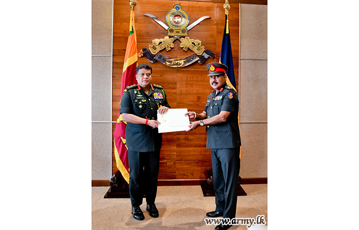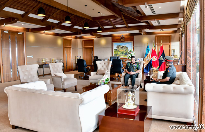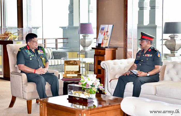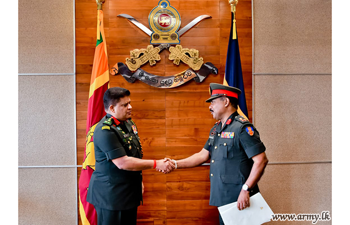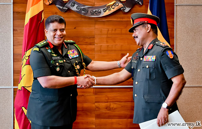 The Sri Lanka Artillery (SLA)-groomed one of the proud and hardworking soldiers, Major General Shantha Hewawitharana, Quarter Master General (QMG) of the Quarter Master General Branch at the Army Headquarters and Colonel of the Regiment of Military Intelligence Corps (MIC) on the eve of his retirement from the Army had the distinction of meeting with the Chief of Defence Staff and Commander of the Army, General Shavendra Silva at latter's office at the AHQ on Tuesday (12).