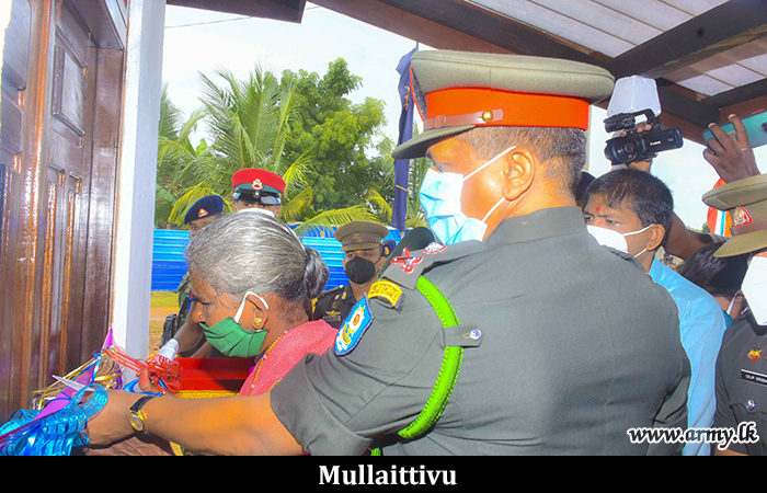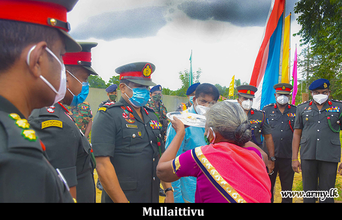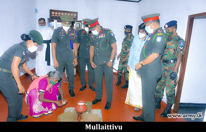 On account of Thaipongal, a new house built by Army troops to Ms Sembakutti Pakyam in Maligathivu in Mullaittivu was also vested in the beneficiary at the same occasion. Major General Jagath Rathnayake, Commander, Security Forces Mullaittivu gifted some essential home appliances at the same location as incentives. The much-needed manpower for the construction work was provided by the troops of 6 Sri Lanka National Guard of the 682 Brigade under the supervision of the 68 Division HQ.
