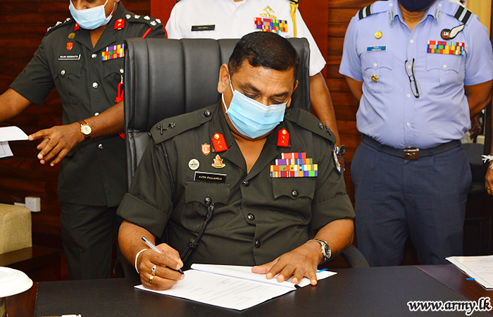 Major General Ajith Pallawala of the Sri Lanka Sinha Regiment (SLSR) assumed office as the Chief of Staff at the Office of the Chief of Defence Staff (OCDS) at BMICH premises on Tuesday (19) amidst religious blessings.