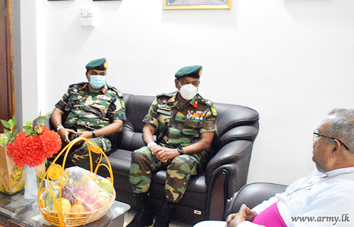 Subsequently, the Commander Security Forces- Wanni paid a courtesy call on the Archbishop of Mannar, Rev Fr Dr. Emmanuel Fernando at the Archbishop House in Mannar. Afterwards, planting of 100 Mee saplings, organized by the 542 Brigade took place in the Wilpaththu area, attended by officers and other ranks.