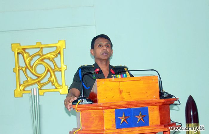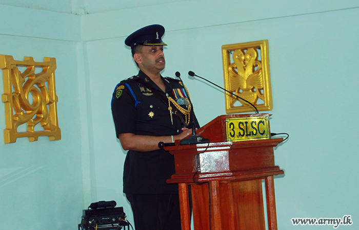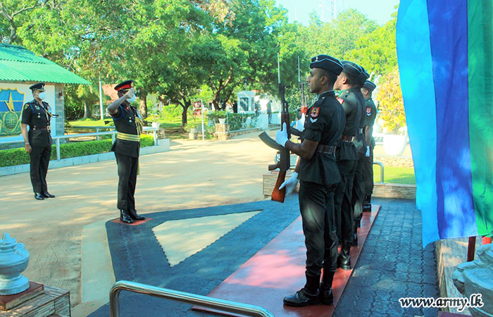 Upon his escorted arrival at the entrance, the Commanding Officer, Lieutenant Colonel N.P.A Mendis received the Chief Guest after the traditional ceremonial Guard Turnout before he was ushered to the Regiment’s Monument to pay floral tributes in memory of all fallen Heroes of the Regiment. Later on, he addressed the troops upon the invitation of the Commanding Officer.