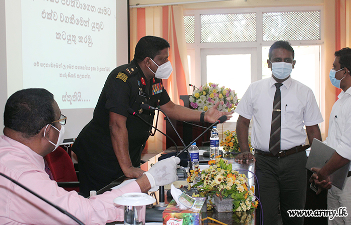 A discussion seeking measures to prevent COVID-19 outbreak in Matale District was held on Tuesday (19) at the Matale District Secretariat office and Gongawela Jumma Mosque with the participation of local authorities, headed by Major General Nishantha Manage, General Officer Commanding 53 Division.