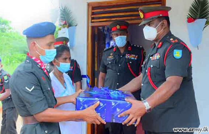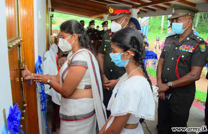 Continuing the Sri Lanka Light Infantry's (SLLI) landmark project for construction of houses for family members of fallen SLLI War Heroes injured ones and for those still serving, the SLLI vested three more houses in beneficiaries a few days ago during separate warming ceremonies.