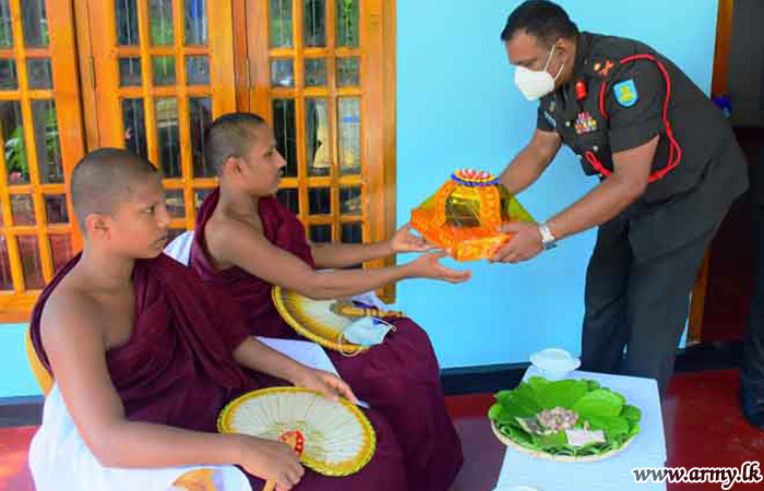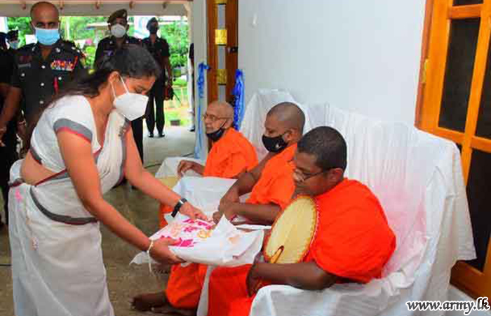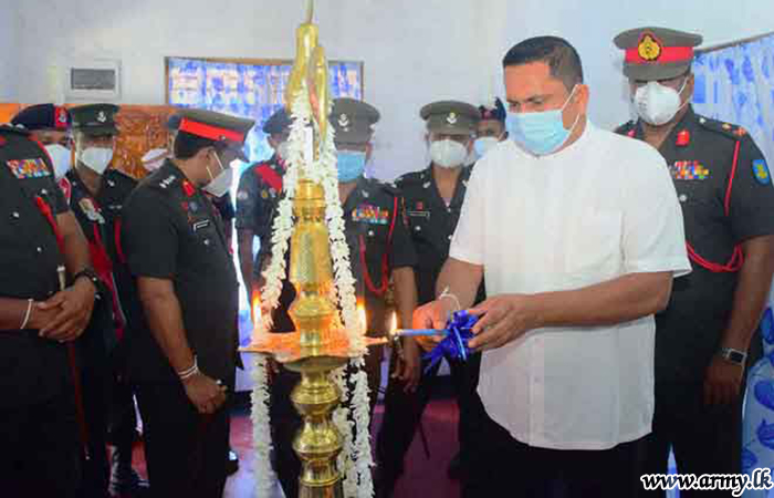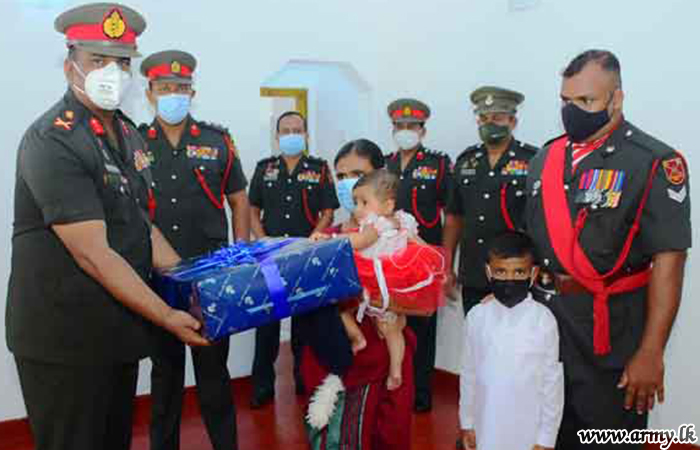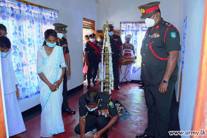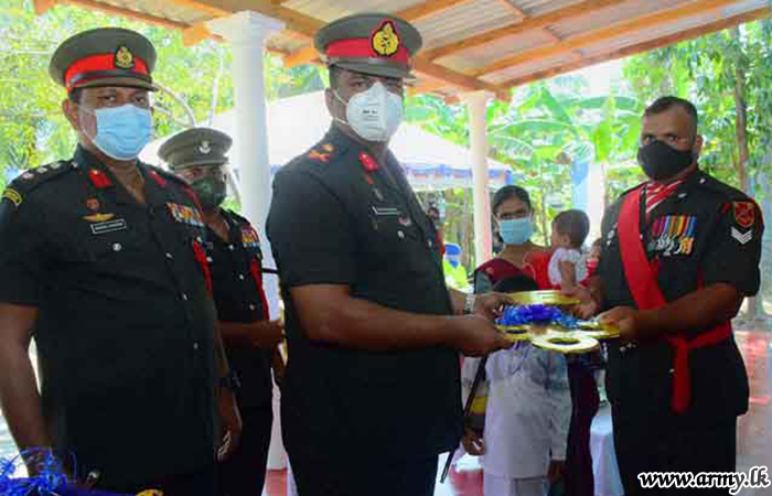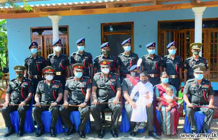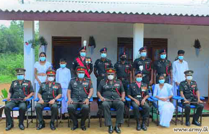 Major General Wasantha Abrew, Colonel of the Regiment, SLLI and Commander, Security Forces-West as the Chief Guest was in Hemmathagama on Friday (15) to warm the house, built for the widowed family of late War Hero, Lance Corporal K.R.K Kalwana. The construction of the new house was carried out by 10 SLLI troops within few weeks at a cost of Rs 15 lakhs. The erection of this new home by troops was closely coordinated and supervised by the Commanding Officer, 10 SLLI.
