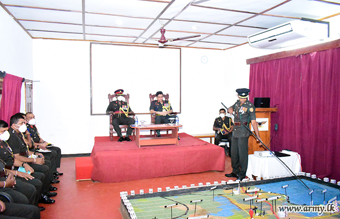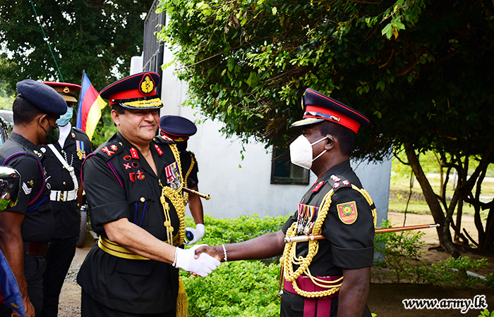 The GOC was warmly welcomed by the Commander 661 Brigade Brigadier Subashan Liyanagama on arrival at the Brigade Headquarters after a ceremonial drive-past Guard Turnout greeted him. Subsequently, Brigade Commander and Commanding Officers of under command Battalions presented separate briefings on operational aspects of those troops.